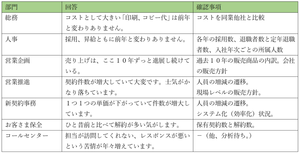 対応策は、後にしよう。他の課題も出てくるかもしれないからな。そういえば新契約部門の人数はどうかな。創業以来目立ったシステム化はやっていないとのことだった。
