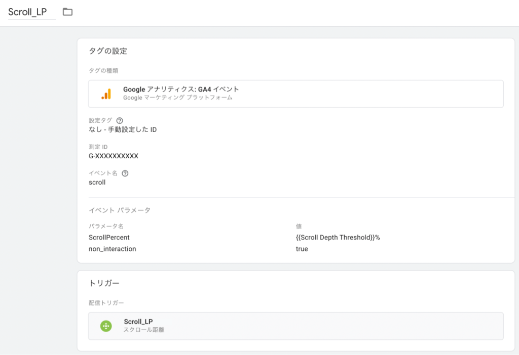[non_interaction][true] - 配信トリガーは今回設定した[Scroll_LP]を選択